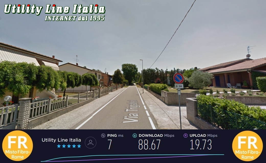 Valori riscontrati: Download=88.67 Mbps - Upload=19.73Mbps