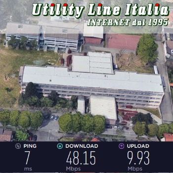 Valori riscontrati: Download=48.15 Mbps - Upload=9.93Mbps
