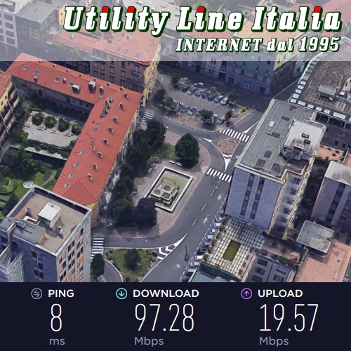 Valori riscontrati: Download=97.28 Mbps - Upload=19.57Mbps