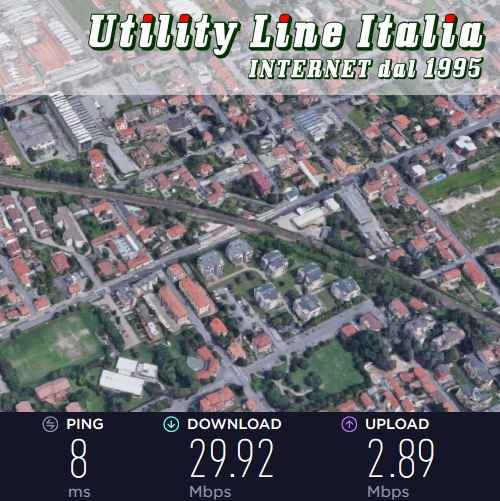 Valori riscontrati: Download=29.92 Mbps - Upload=2.89 Mbps