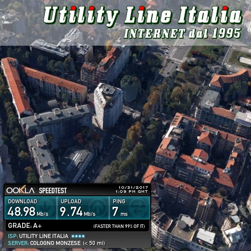 Valori riscontrati: Download=48.98 Mbps - Upload=9.74Mbps