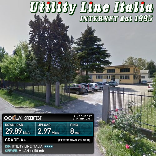 Valori riscontrati: Download=29.89 Mbps - Upload=2.97Mbps