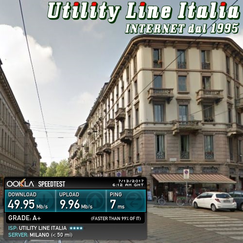 Valori riscontrati: Download=49.95 Mbps - Upload=9.96Mbps