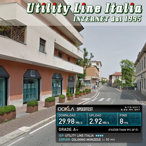 Valori riscontrati: Download=29.98 Mbps - Upload=2.92Mbps