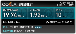 Valori riscontrati: Download=29.97 Mbps - Upload=2.87Mbps