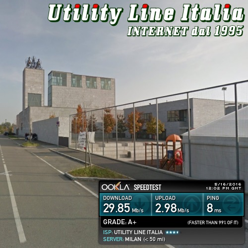 Valori riscontrati: Download=29.85 Mbps - Upload=2.98 Mbps