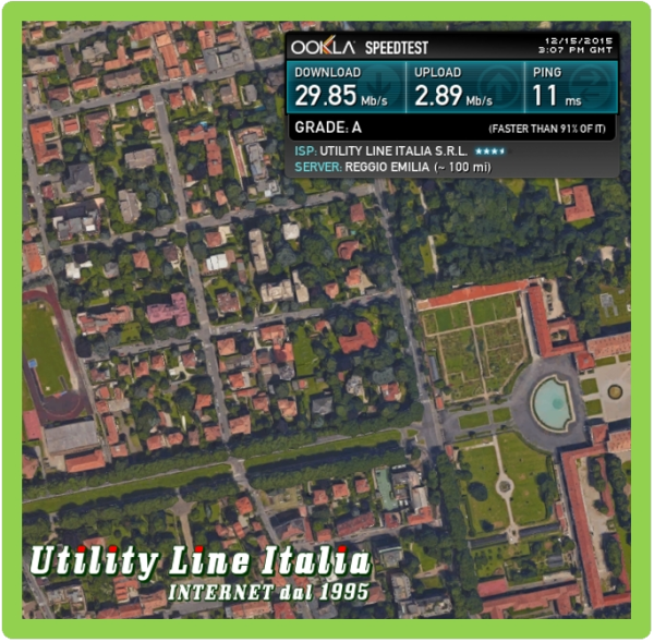 Consegnato collegamento in Fibra Ottica FTTC 30 Mega (UV30330M/3M) in collaborazione con il nostro Partner Commerciale G&G srl in Piazza Ducale a Vigevano (PV). Valori di allineamento:Download=29.91 Mbps - Upload=2.95Mbps