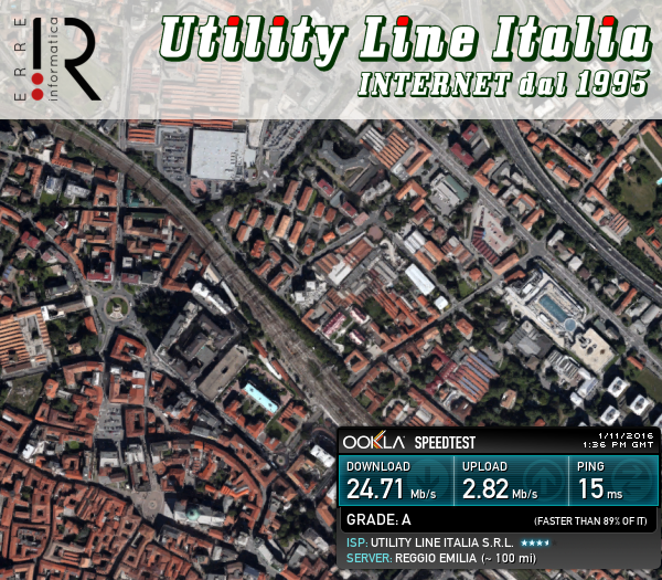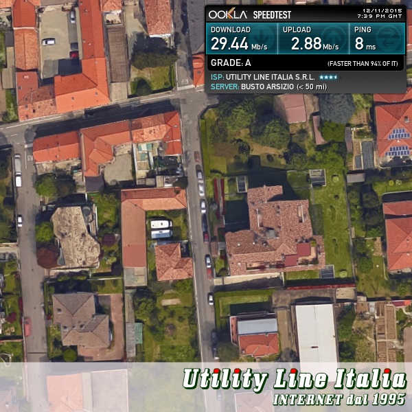 Consegnato collegamento in Fibra Ottica FTTC 30 Mega (UV30330M/3M) in collaborazione con il nostro Partner Commerciale Erre Informatica in via Venegoni a Gallarate (VA). Valori riscontrati:Download=24.74 Mbps - Upload=2.82Mbps