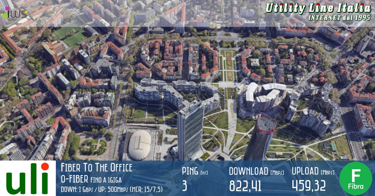 Continua il progetto UPGRADE FTTH di ULI. consegnato nuovo collegamento in fibra ottica con tecnologia FTTO (Fiber To The Office) su infrastruttura OpenFiber 1Gbps/500Mbps con graranzia di banda pari a 15Mbps/7,5Mbps (profilo O-FIBER) a Milano Piazzale Giulio Cesare in collaborazione con il nostro Partner Commerciale IWS di Matteo Cartabia.