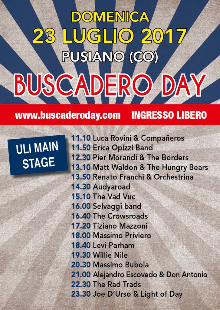 Domenica 23 luglio, dalle 11:00 alle 24:00, a Pusiano (Como), a 1 ora d’auto da Milano, appuntamento col “Buscadero Day”, la maratona musicale in cui si alterneranno 40 band del nuovo genere americana: dal folk al rock, al blues. Main sponsor: ULI – Utility Line Italia. Ingresso libero