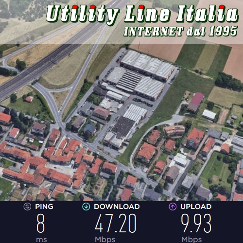 Valori riscontrati: Download=47.20 Mbps - Upload=9.93Mbps