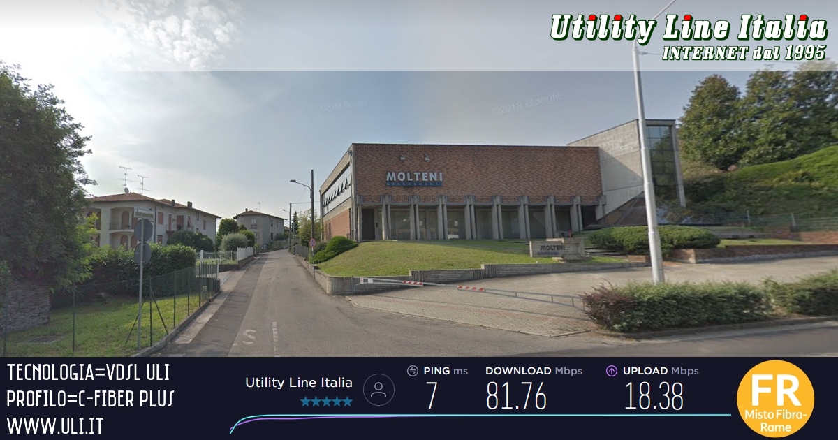Valori riscontrati: Download=81.76 Mbps Upload=18.38Mbps.