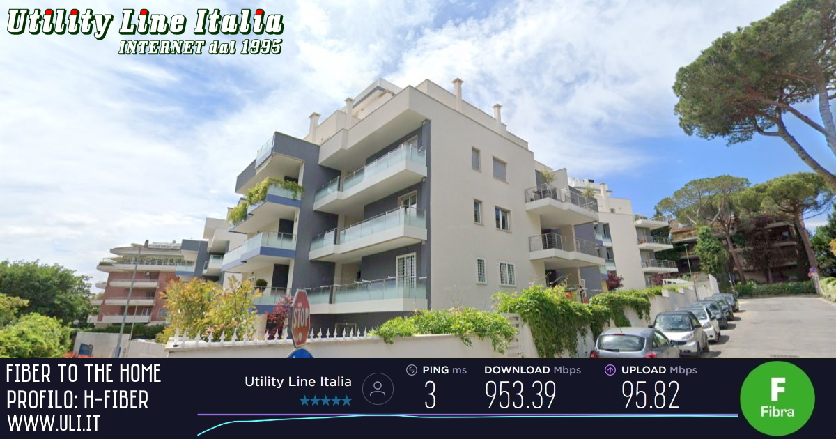 | La Fibra Ottica FTTH 1Giga di ULI con profilo H-FIBER raggiunge Roma in Via Misurina, 6. |