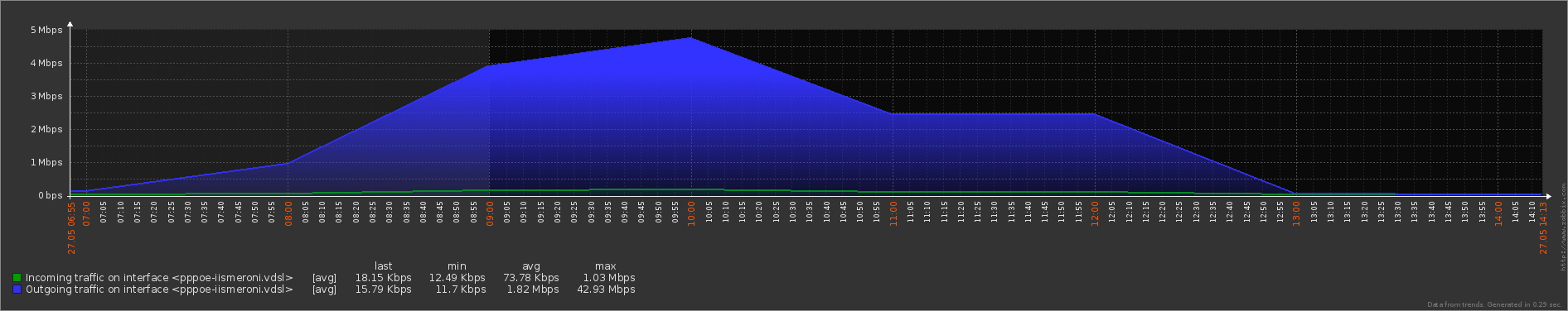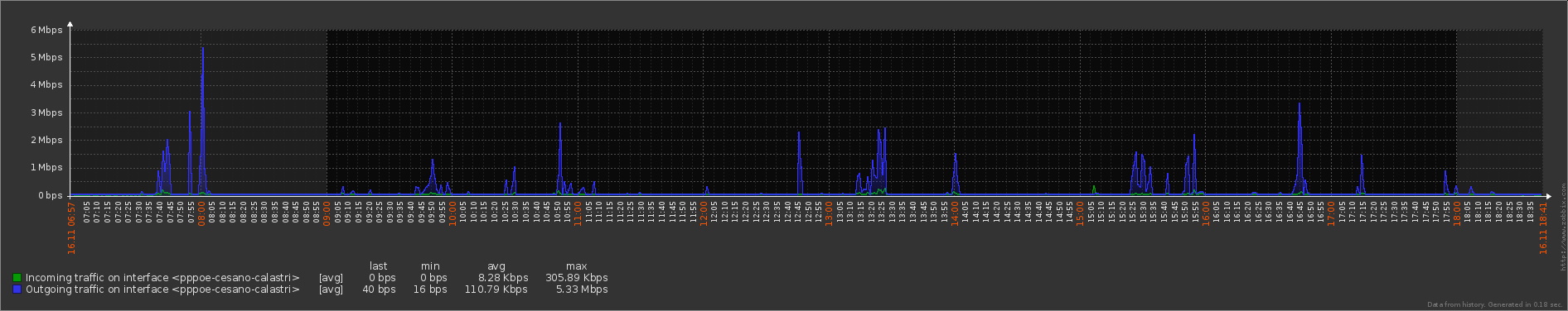 [tutti gli alunni in DAD, traffico notevolmente aumentato (+500% in uplaod e +25% in download) in cui si riesce a vedere anche il cambio dell'ora]