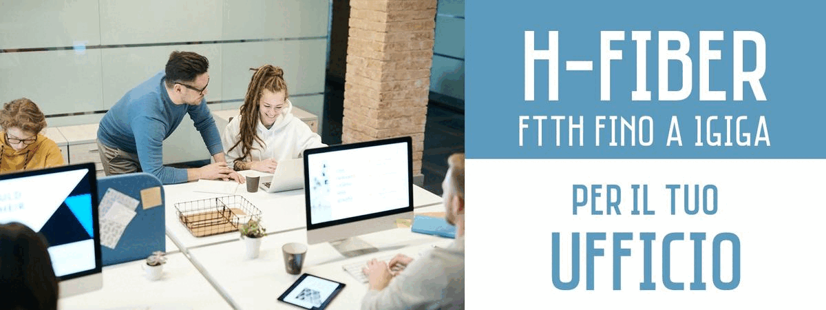 - H-FIBER: Connessione in Fibra FTTH (Fiber To The Home) fino a 1000/100 Mbps con traffico illimitato.