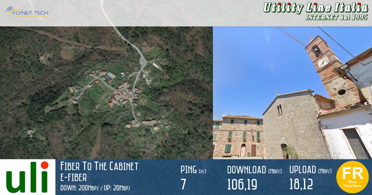 In attesa che l'infrastruttura in fibra FTTH sia pronta, consegnamo in soli 3 giorni nuovo collegamento in fibra con tecnologia FTTC EVDSL (Profilo E-FIBER Down: 200Mbps / Up:20Mbps) in collaborazione con il nostro Partner Commerciale FlyNet-Tech.