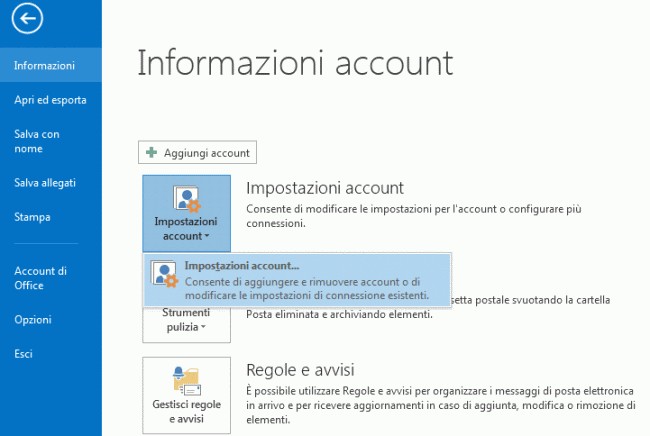 1. Aprire Microsoft Outlook 2013 - File - Aggiungi Account