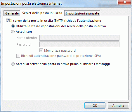 5. Inserire la spunta su "Il server della posta in uscita (SMTP) richiede l'autenticazione".