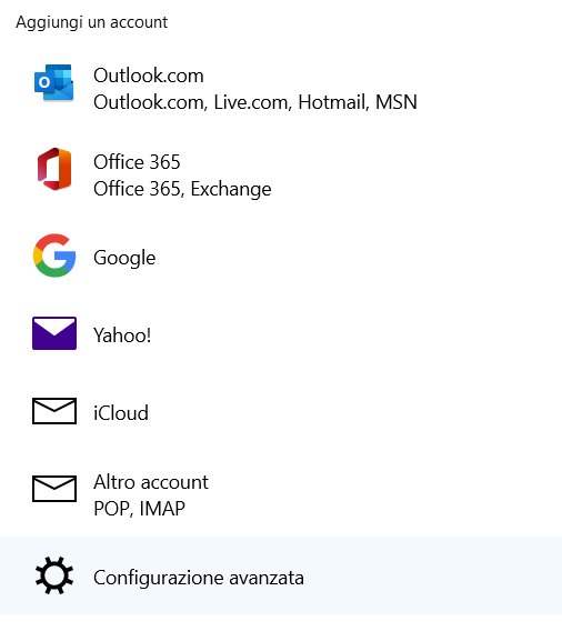 - Dal menù Aggiungi un account scegliere l’opzione "Configurazione avanzata"