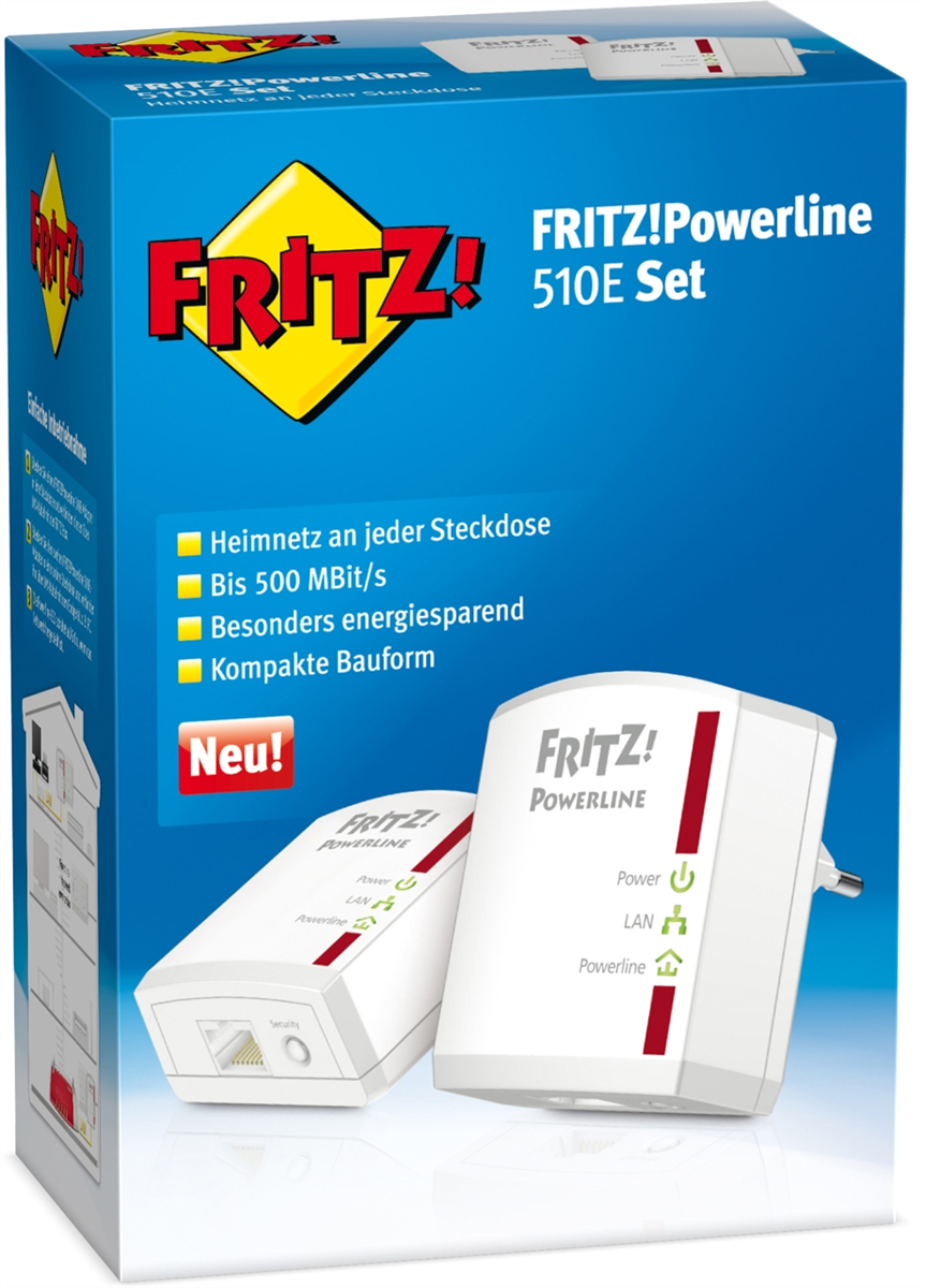 Con FRITZ!Powerline 510E è un gioco da ragazzi trasformare qualsiasi presa di corrente in un collegamento sicuro e veloce alla rete. La tecnologia più recente consente velocità di trasmissione fino a 500 MBit/s tramite la rete elettrica.Aggiungendo ulteriori adattatori powerline, si possono collegare in ogni momento alla rete domestica altri dispositivi collegabili in rete.